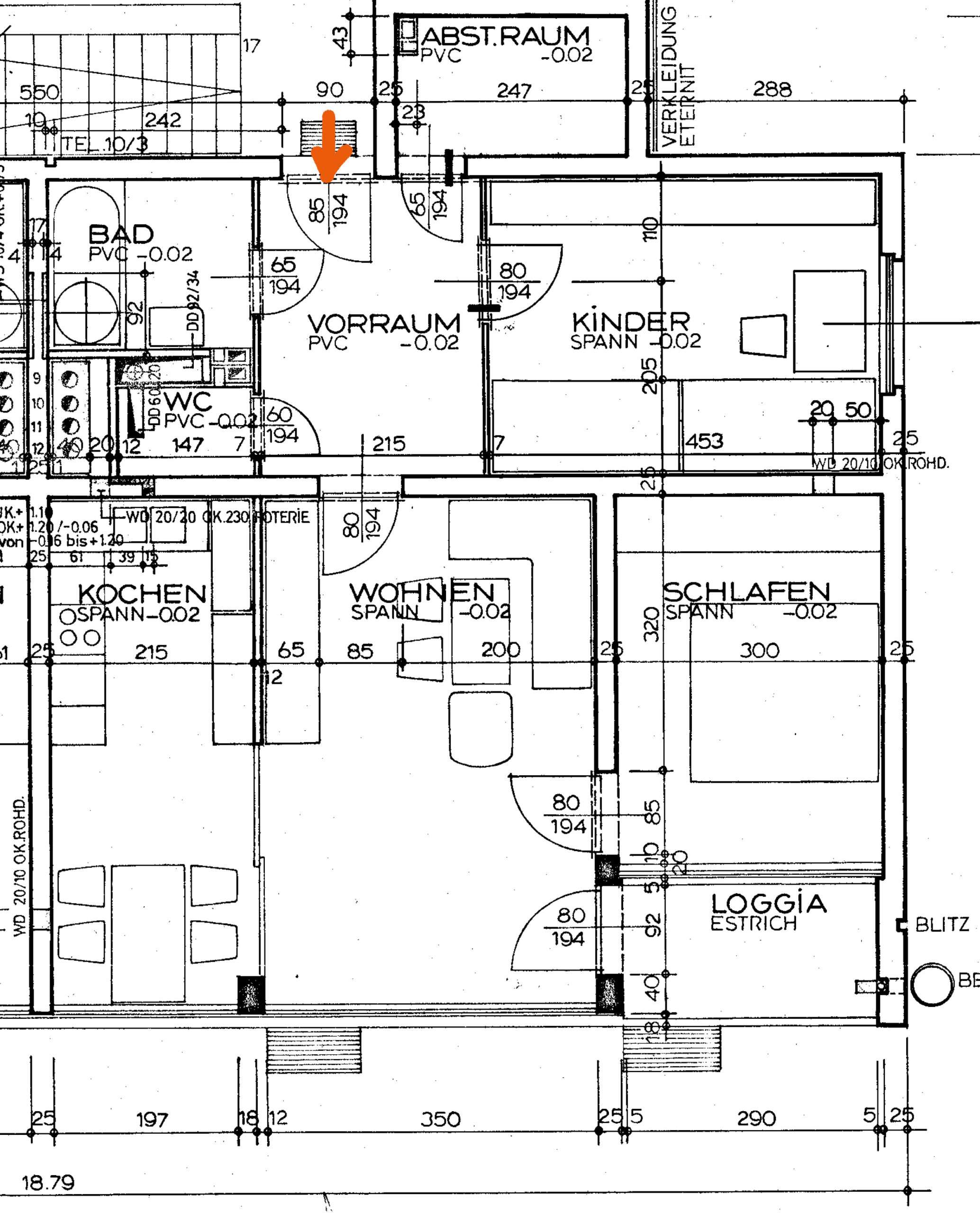 im Erdgeschoss mit 76,52 m², drei Zimmer, Bad/WC getrennt, VR, AR, Loggia, Parkett, HWB = 81 kWh/m²a, Lift