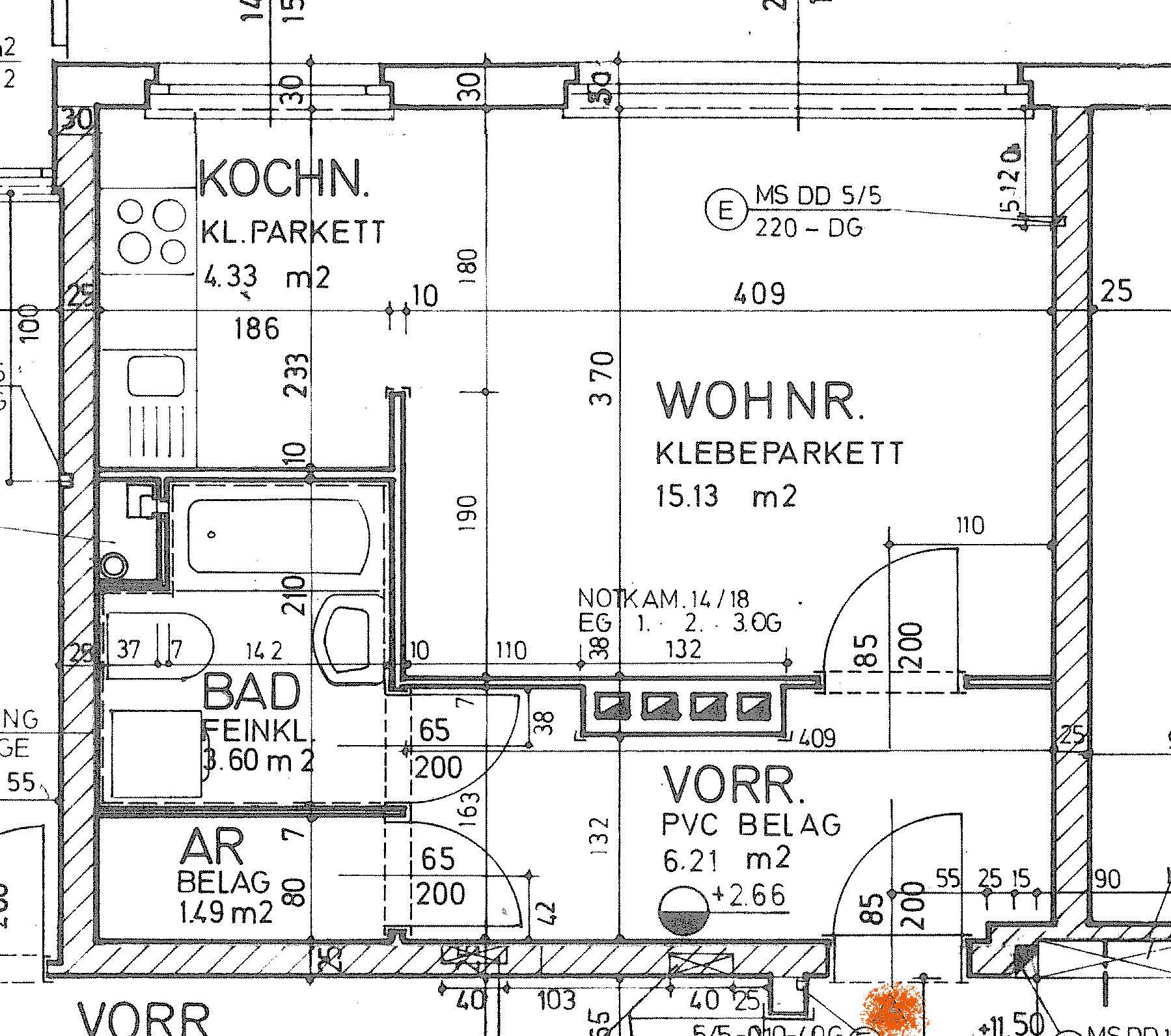 im Erdgeschoss mit 31,52 m², ein Zimmer, Bad/WC, Parkett, HWB = 62,7 kWh/m²a, Lift, Parkplatz