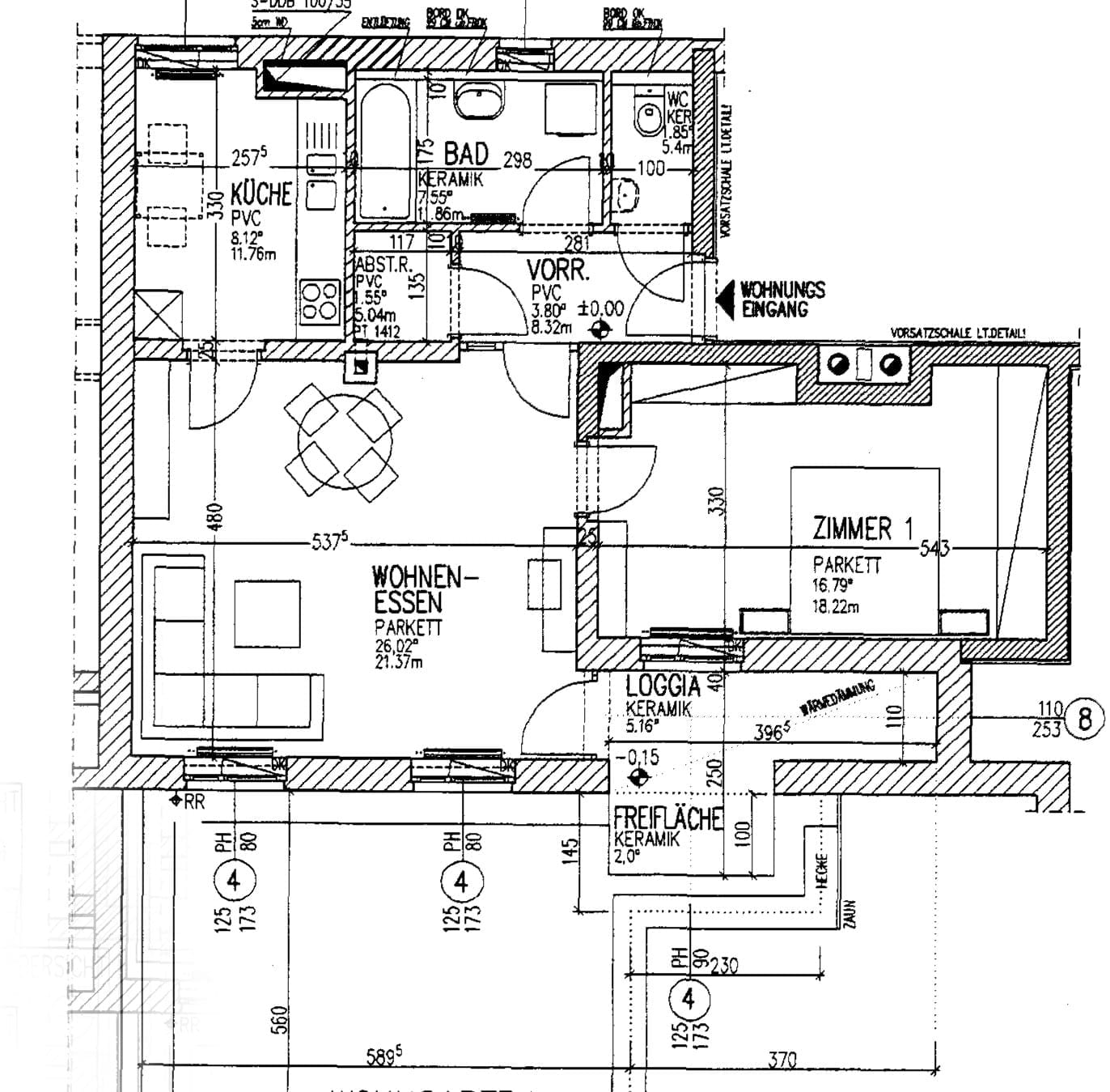 im 3. Obergeschoss mit 81,19 m², drei Zimmer, separate Küche, Bad/WC getrennt, VR, AR, Loggia, Parkett, HWB = 70,8 kWh/m²a, TG-Parkplatz, Lift