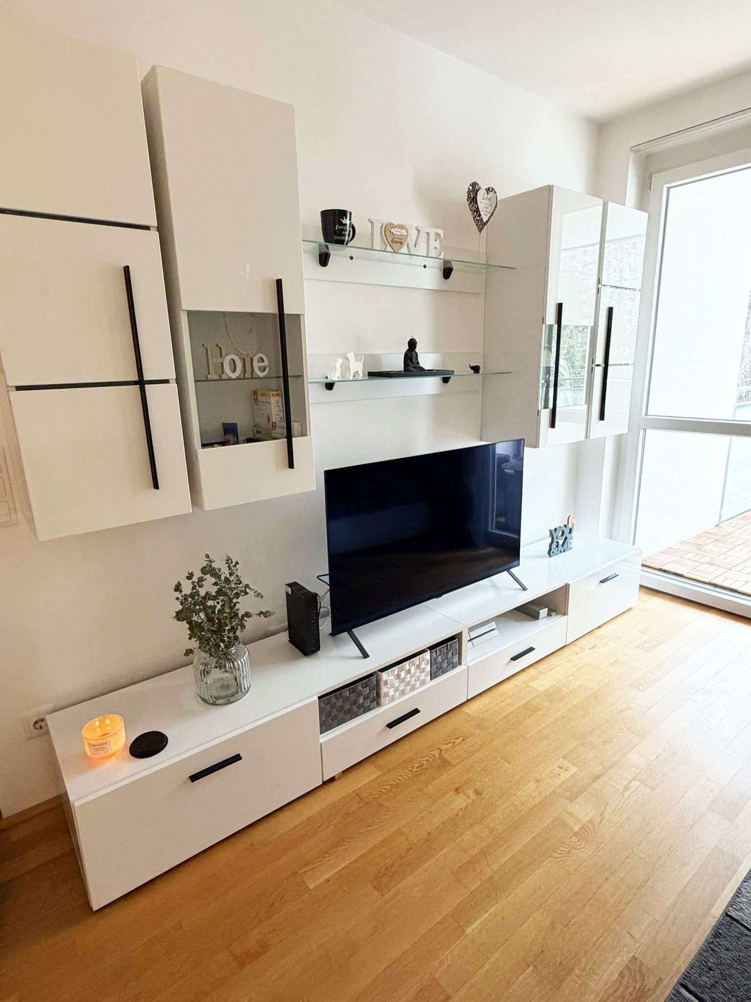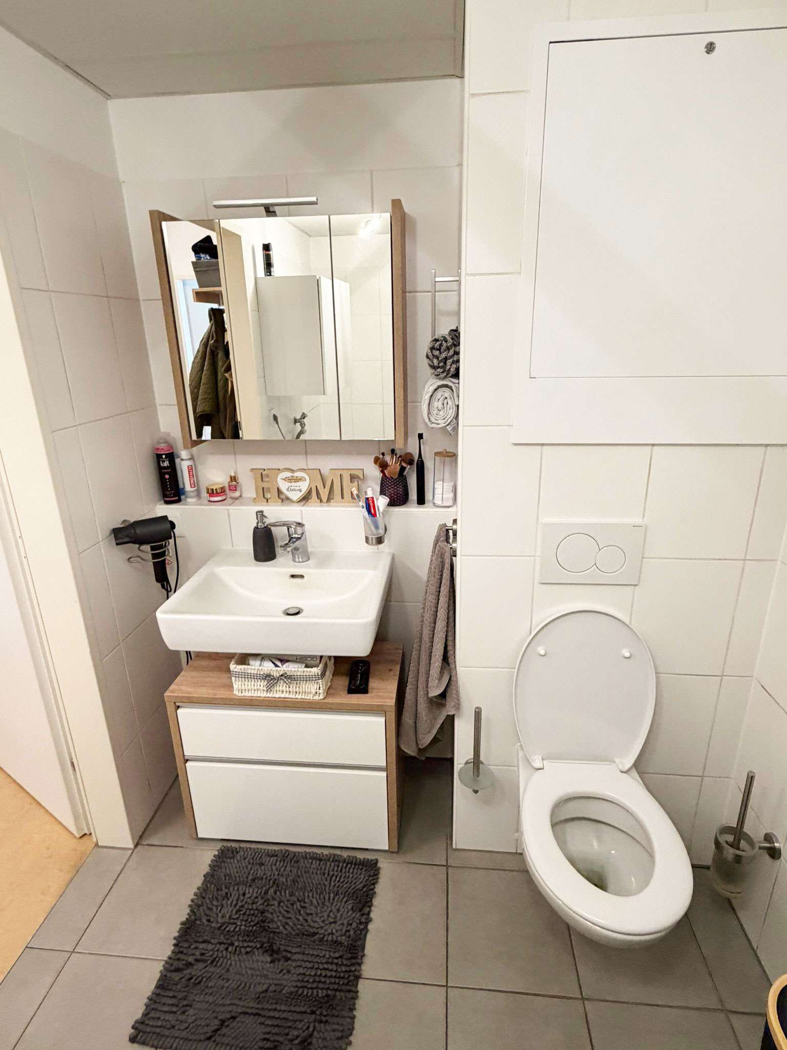 Die Küche, Esstisch und Bänke, Wohnwand, Couch, Schlafzimmer Kasten, Bett, Garderobe und die Möbel im Bad können nach Absprache mit dem derzeitigen Mieter abgelöst werden.