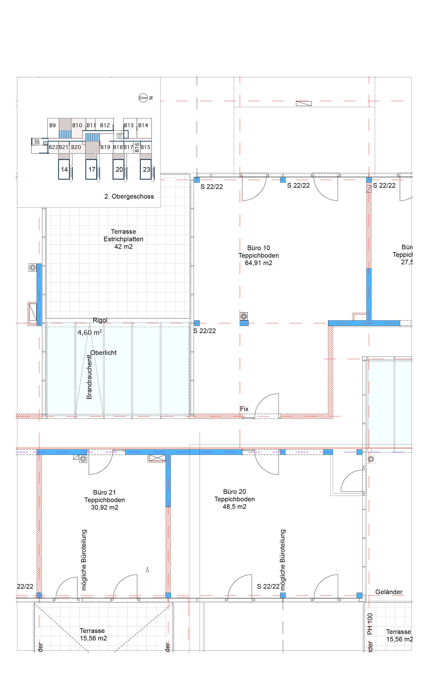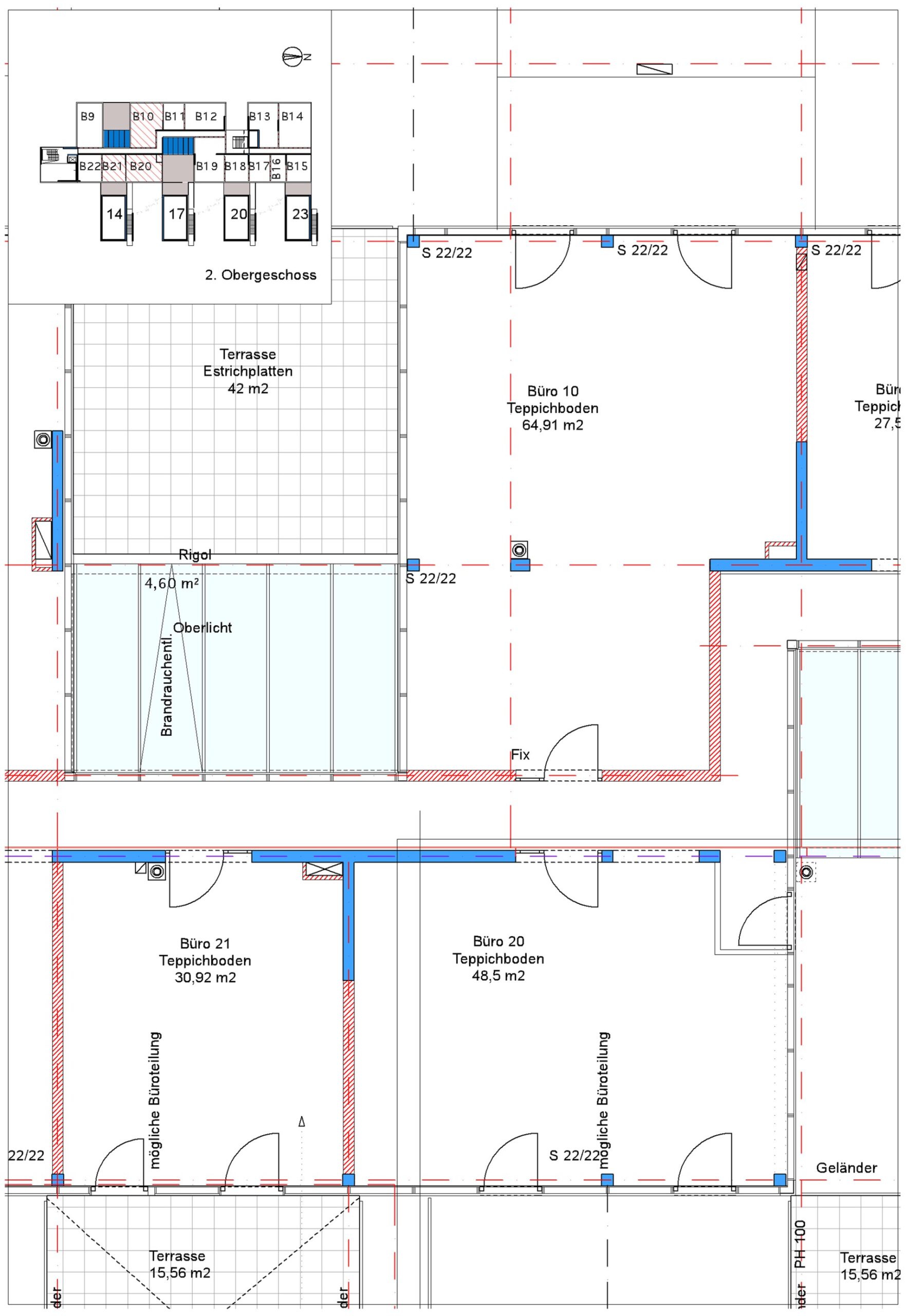 im 2. Obergeschoss mit 64,91 m², ein Büroraum, Bad/WC, HWB = 19,1 kWh/m²a, Parkplatz