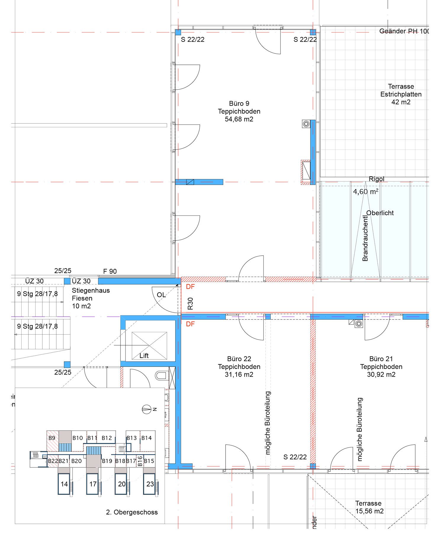 im 2. Obergeschoss mit 30,92 m², ein Büroraum, Bad/WC, HWB = 19,1 kWh/m²a, Parkplatz