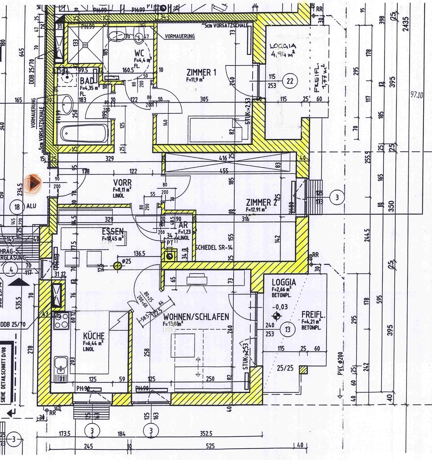 im Erdgeschoss mit 82,51 m², drei Zimmer, Bad/WC getrennt, VR, AR, Terrasse, Garten, Parkett, HWB = 80,2 kWh/m²a, Parkplatz, Lift