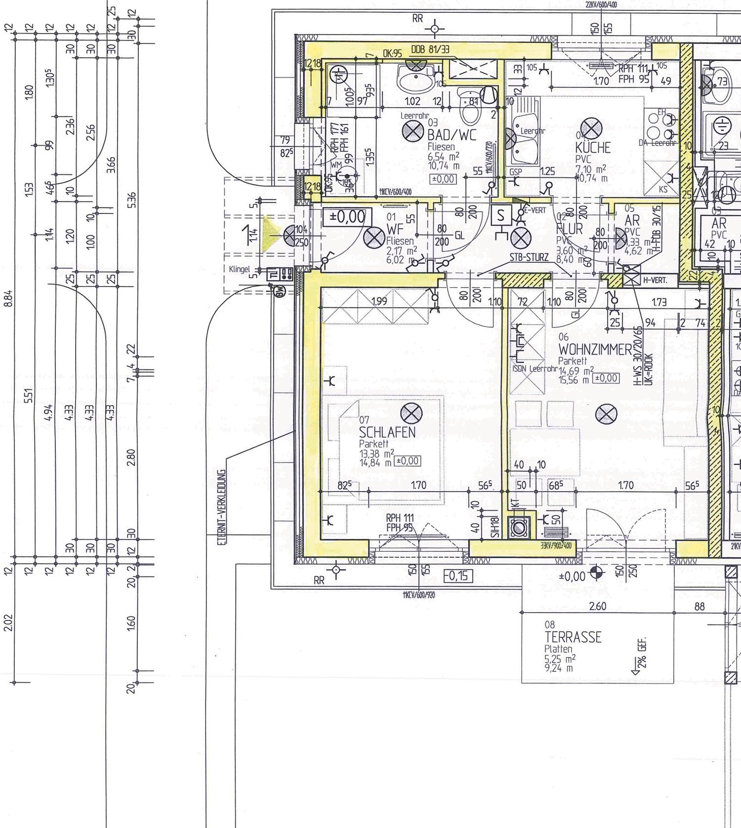 im Erdgeschoss mit 48,81 m², zwei Zimmer, separate Küche, Terrasse, Garten, Bad/WC, AR, Parkett, HWB = 51 kWh/m²a, Parkplatz